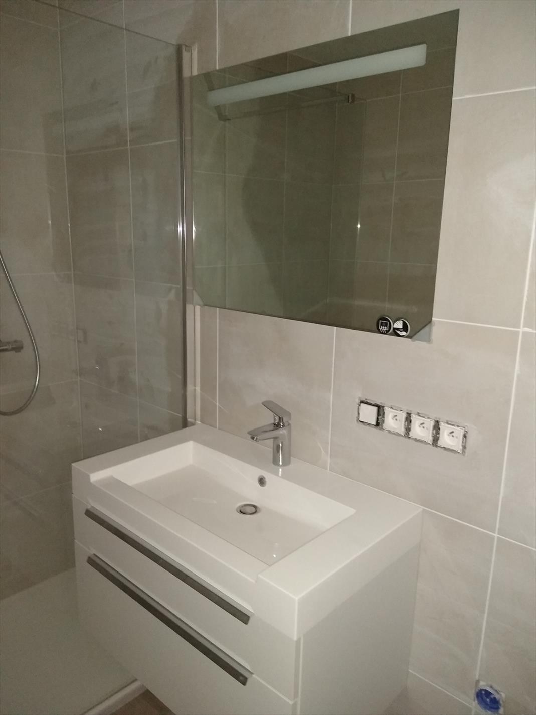 De indeling is als volgt: via de hoofdinkom op het gelijkvloers nemen we de trap tot aan de 1ste verdieping waar we het appartement bereiken. Via de inkomdeur van het appartement komen we via de gang in de living met open keuken (uitgerust met keramische kookplaten, dampkap en spoelbak met mengkraan). Achteraan de living bevindt zich een schuifraam met aanpalend balkonterras. Op hetzelfde niveau hebben we de ingerichte badkamer met douche en lavabo in meubel, alsook een apart toilet en een technische berging. Via de centrale gang bereiken we eveneens de 2 slaapkamers. Op elke kamer is internetaansluiting en voldoende stopcontacten. Afmetingen slaapkamers: slpk 1: 4,20 m x2.12 m en slpk 2: 3.15 x 3.40 m Centrale verwarming op aardgas met condensatieketel. Verluchtingssysteem C+ (Duco). Op gelijkvloers is 1 private autostaanplaats inbegrepen in de huurprijs. In de kelder is nog een extra berging. Het appartement werd reeds volledig geschilderd. Voor afspraak mail info@qualimmo.be - wij contacteren u om een bezoekmoment af te spreken.
