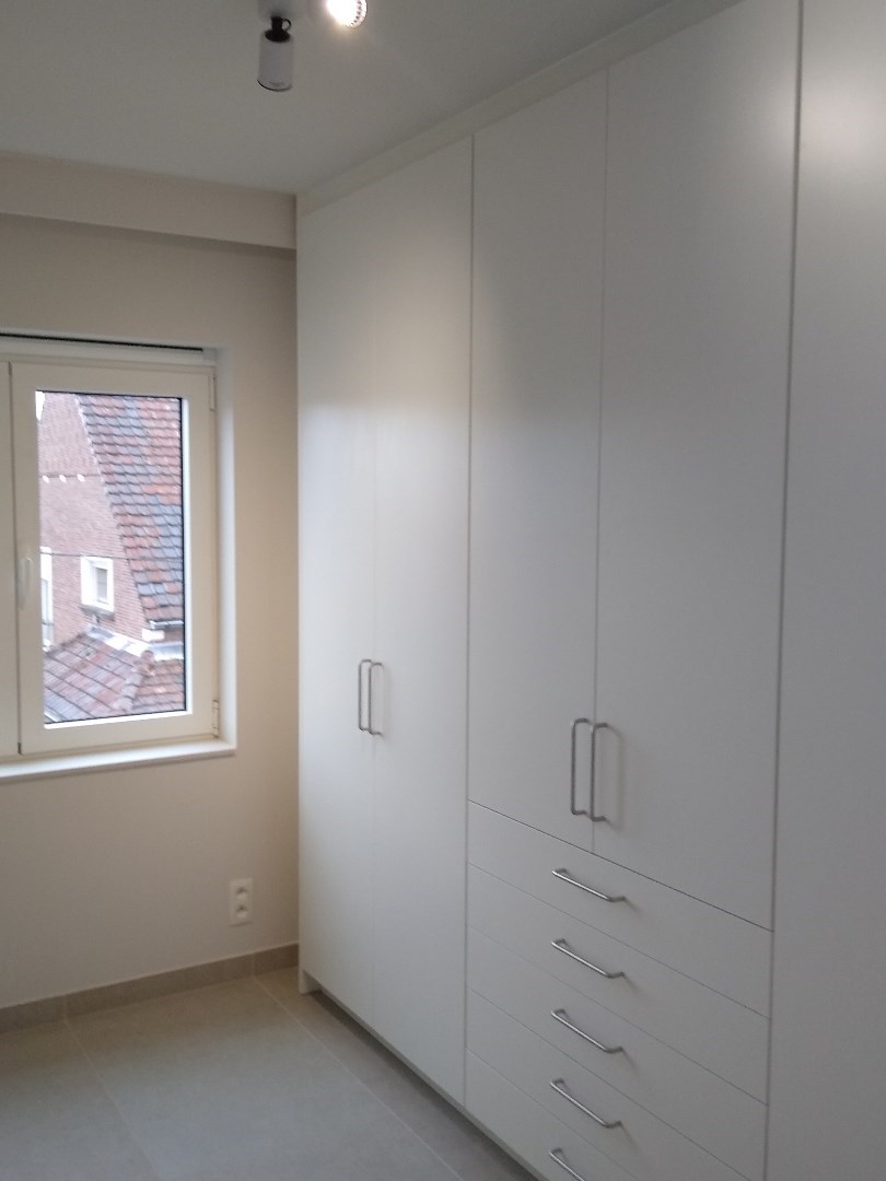 Dit volledig gerenoveerde appartement bevindt zich op de 2de verdieping in een kleinschalig gebouw en beschikt over een heel ruime garage. Bij binnenkomst in de gang is er een ingemaakte vestiairekast.