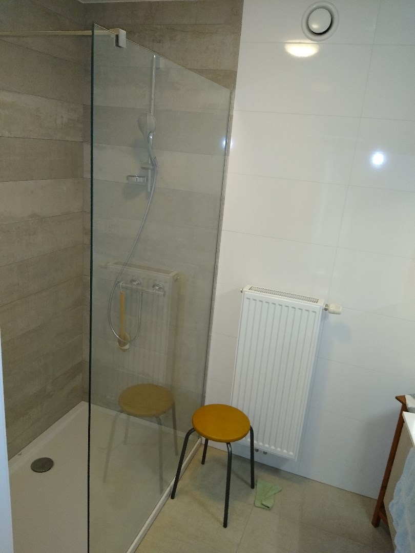 Het appartement heeft ook een moderne badkamer met alle benodigde voorzieningen o.a. inloopdouche. Het toilet met handwasser is apart.