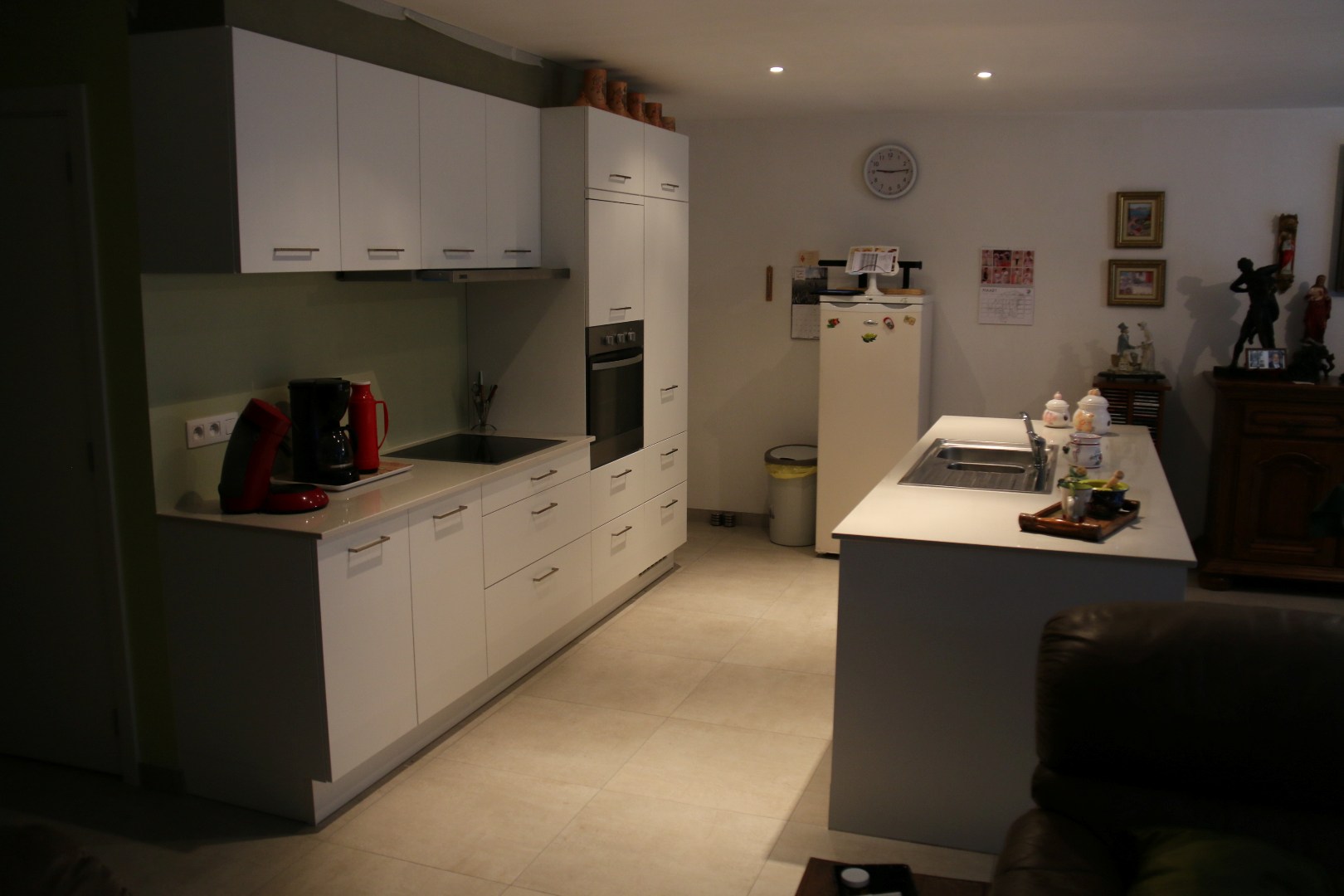 Indeling: Via de ruime inkomhal met apart gastentoilet komt u in de aangename en lichtrijke leefruimte met een ingerichte open keuken. De keuken is voorzien van kwalitatieve toestellen: warmeluchtoven, keramische kookplaat, inox dampkap, vaatwasser, inbouwkoelkast en spoelbak.