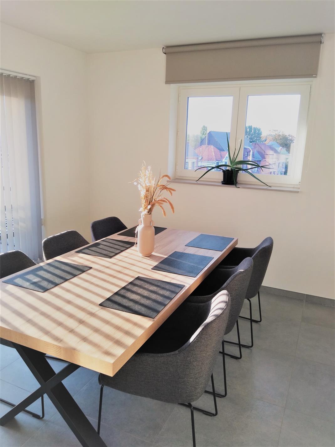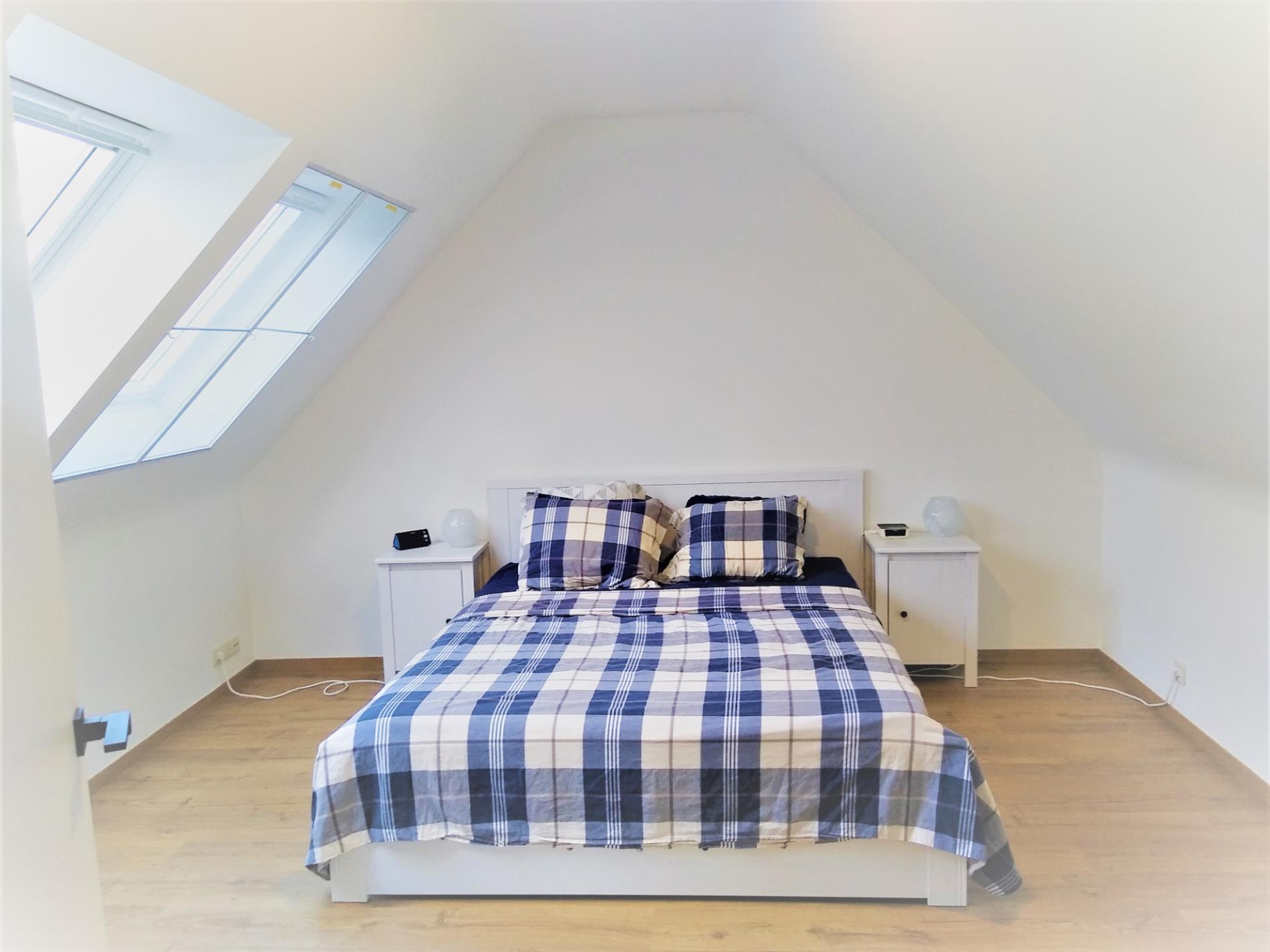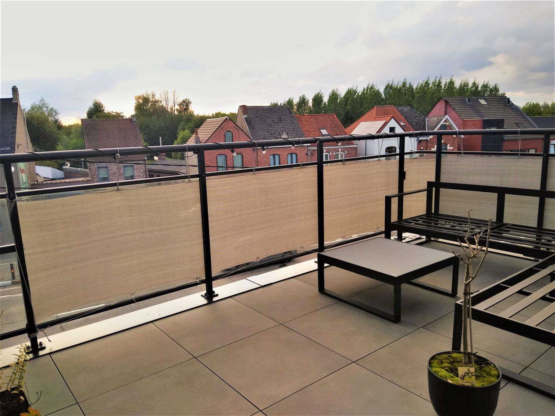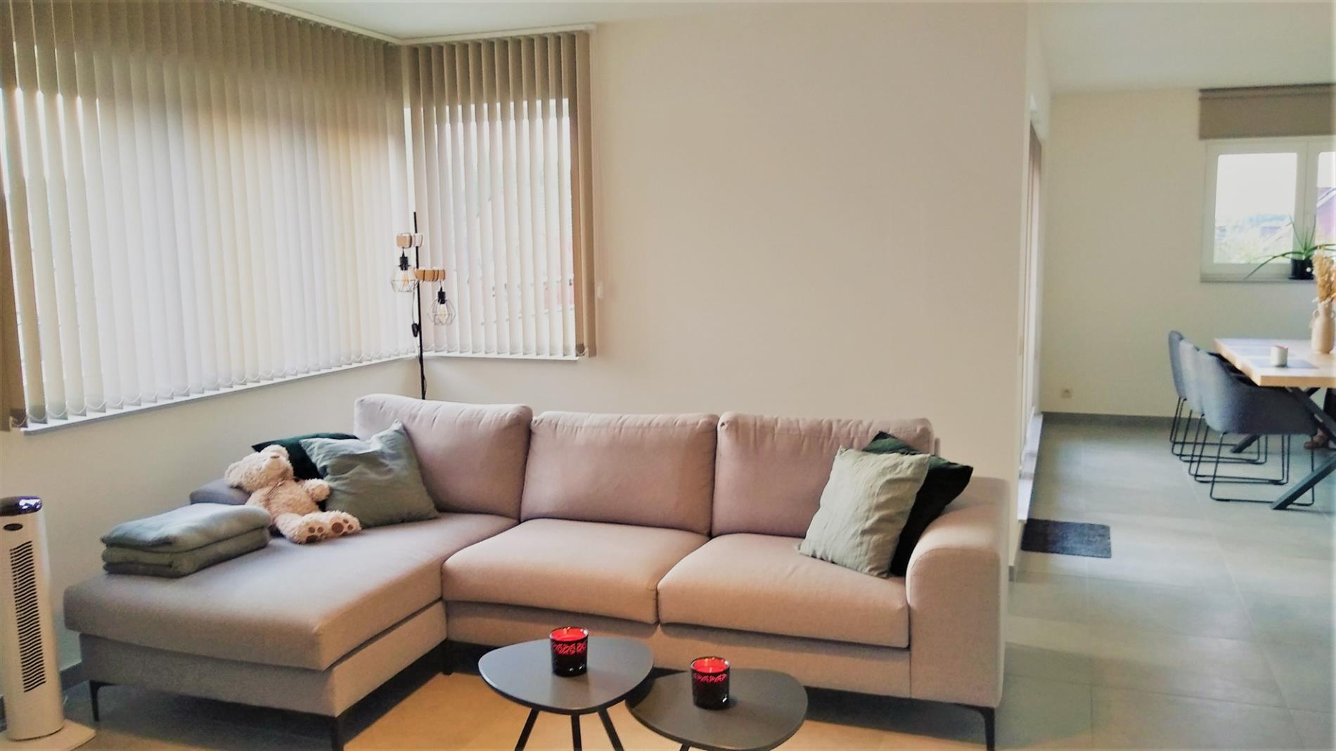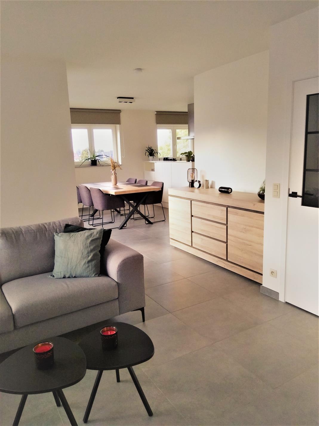 Dit recent appartement wordt verhuurd tegen 1 januari 2022. Het is een duplex-appartement op de 2de en 3de verdieping in de residentie 'Da Vinci' te Lede. Het appartement beschikt over 2 slaapkamers, waarvan één op het benedenniveau en één op de verdieping. Volledig instapklaar want reeds geschilderd, overal verlichting voorzien en zelfs lamellen en stores aan de ramen. Zeer lichtrijk dank zij de vele raampartijen. Heel grote living met aanpalende open keuken, die beschikt over een verzoet werkblad en alle comfort aan toestellen. Aanpalend treffen we de heel ruime berging, geschikt voor wasmachine en droogkast, alsook proviandruimte. Hier bevindt zich de warmtepomp via dewelke het volledige appartement wordt verwarmd via vloerverwarming. Er zijn maar liefst 4 thermostaten op het appartement. Via het schuifraam kom je op het terras afgewerkt met tegels en sterke balustrade. Via een lange gang kan je de slaapkamer op benedenniveau bereiken en bevindt zich eveneens een badkamer met heel ruime inloopdouche en dubbele wastafel, alsook een apart toilet. Via een stevige trap met open treden bereiken we de bovenste verdieping waar zich een slaapkamer bevindt met aanpalend een 2de toilet en wastafel, alsook een ingemaakte dressing. Via de lift kan je naar de ondergrondse garage gaan. deze heeft een automatische sectionaalpoort en is heel ruim. Bezichtiging enkel op afspraak op zaterdag 25/09 vanaf 11 uur via mail op info@qualimmo.be of tel. 053 80 92 70 In de huurprijs is de garage inbegrepen en ook de gemeenschappelijke lasten.