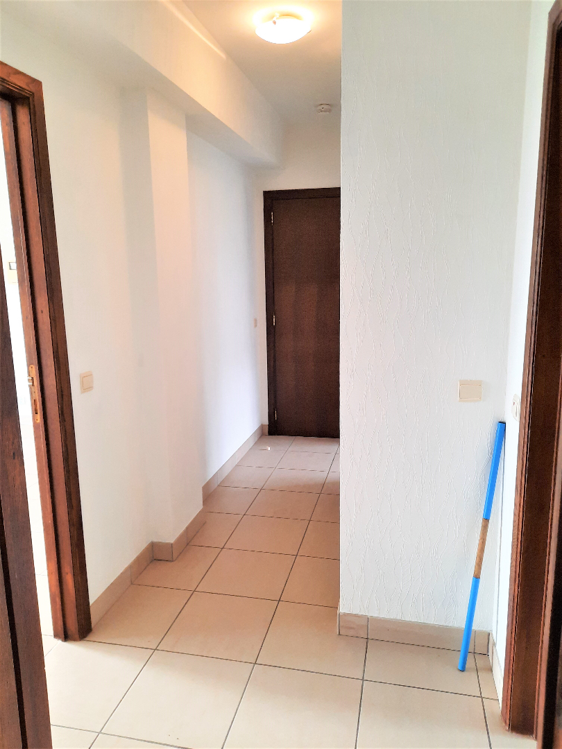 De living brengt ons via de andere zijde in de nachthall die ons toegang geeft tot twee ruime slaapkamers, een praktische bergruimte alsook een badkamer met bad en douche en badkamermeubel met twee ingebouwde wastafels en inbouwspots.