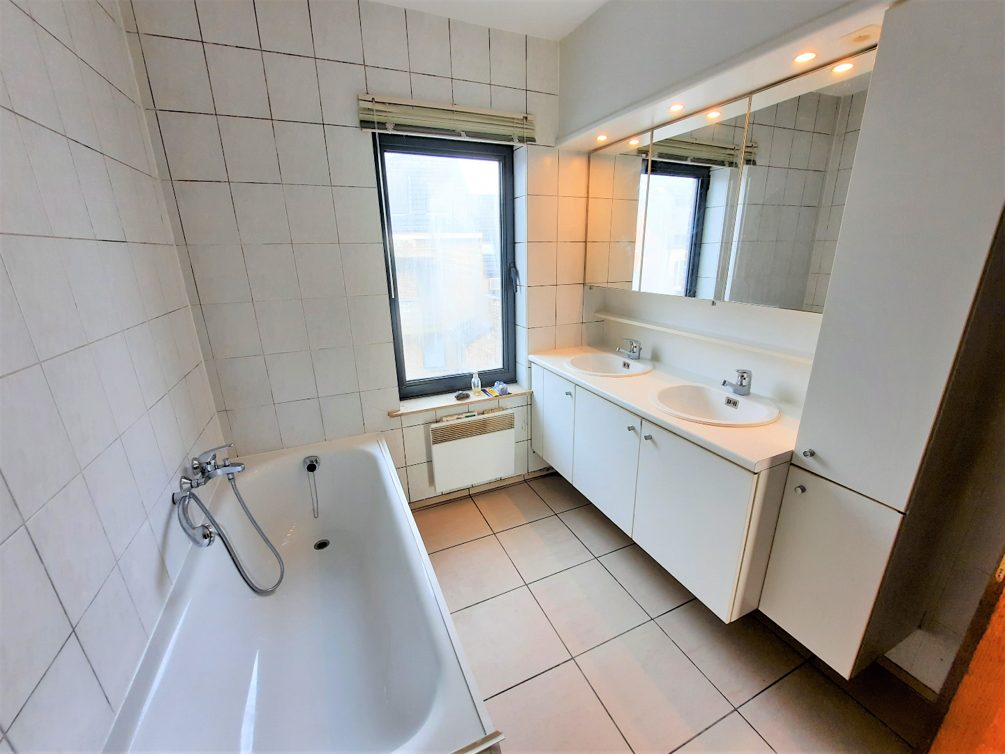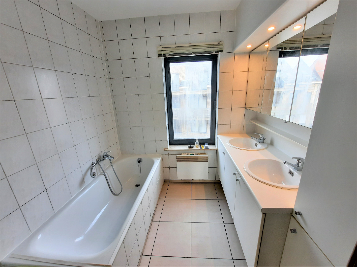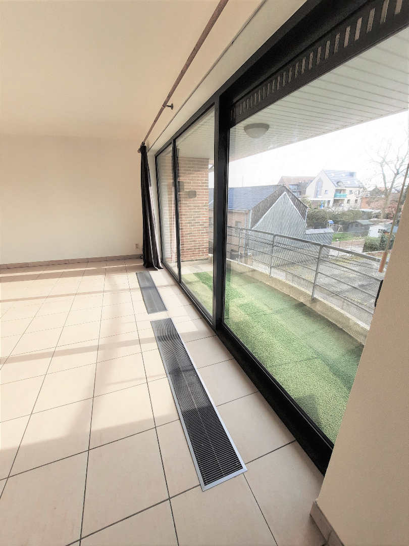 Dit appartement op de tweede verdieping is afgewerkt met duurzame materialen en biedt u heel wat ruimte. Zo komen we binnen in de hall met apart gastentoilet. Via de hall bereiken we de lichtrijke living met glaspartij aan de zuiderkant met een breedte 4,5 meter. Deze glaspartij kan deels geopend worden, langs waar u toegang krijgt tot het zuidgericht terras. Via de living komen we terecht in de aparte uitgeruste keuken met vitrokeramische kookplaat, ingebouwde oven, dampkap, ingebouwde koelkast en dubbele inox spoelbak met afdruiprek. Bovendien beschikt de keuken over 3 ramen die allen geopend kunnen worden.
