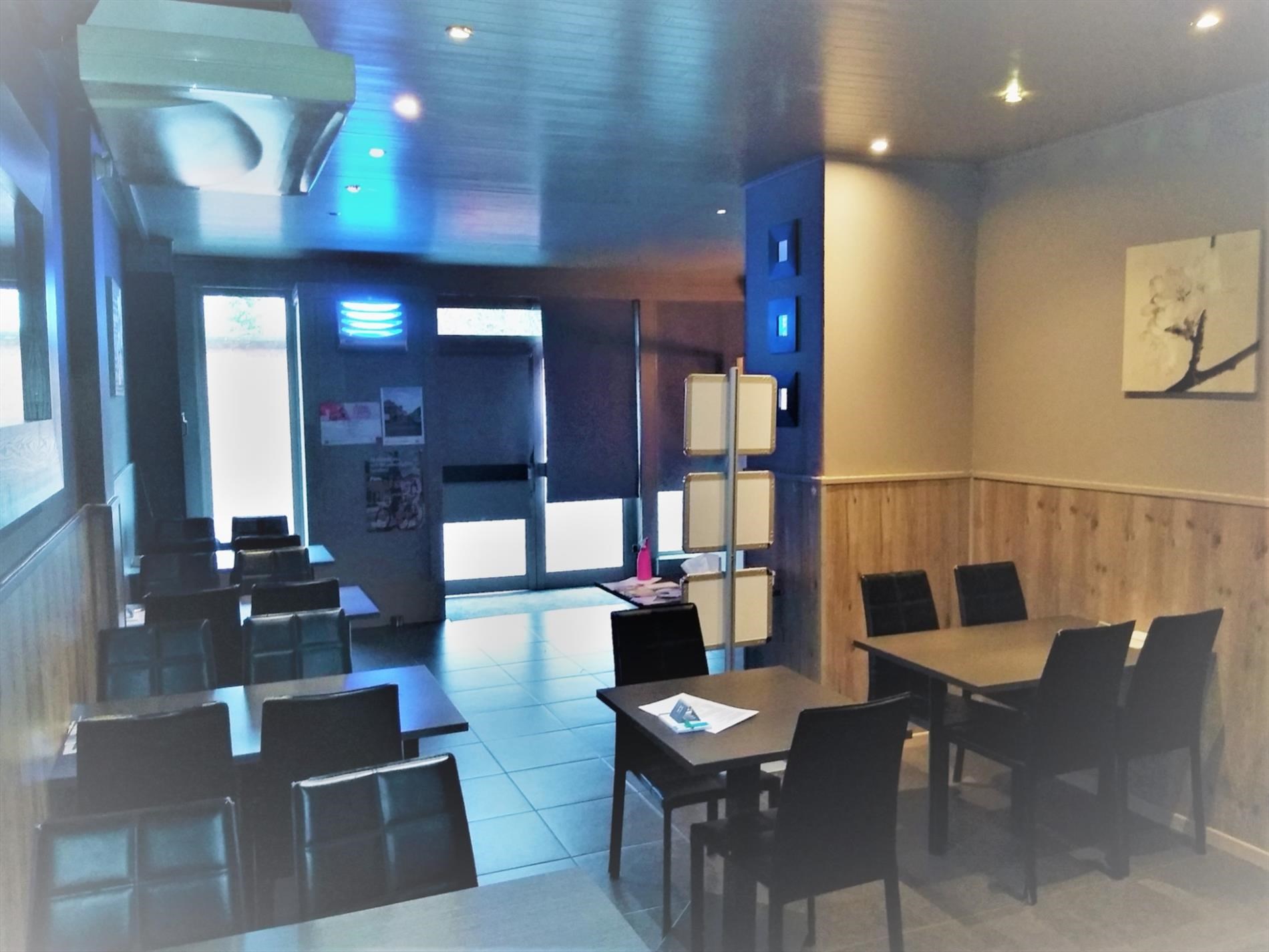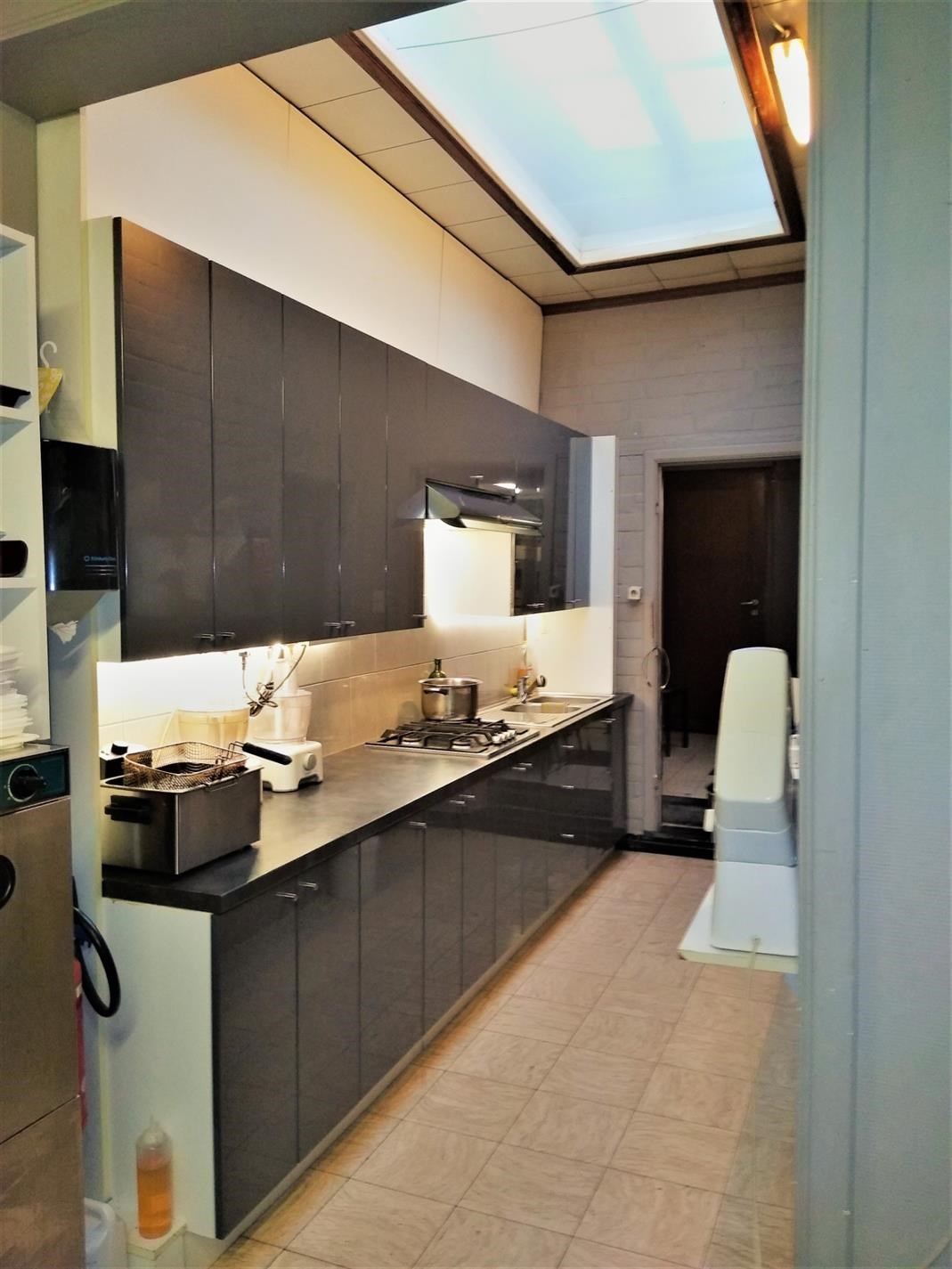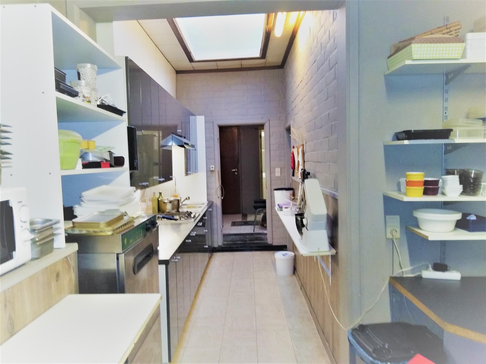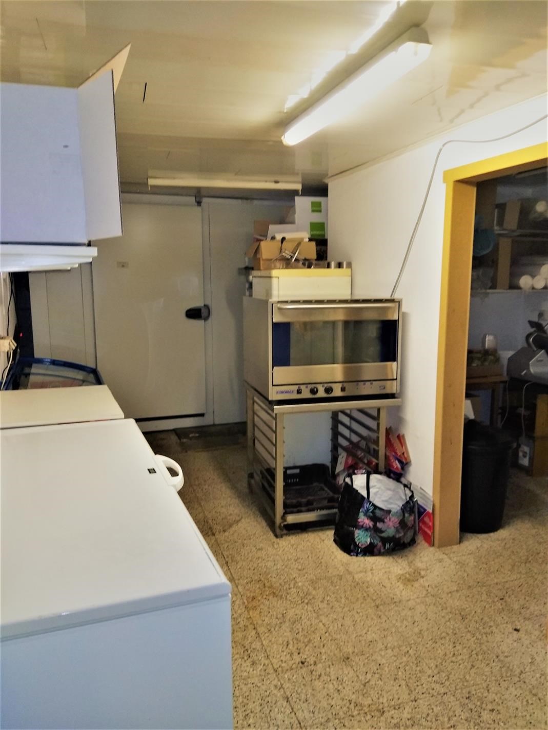 Op gelijkvloers is het handelsgedeelte dat onmiddellijk kan in gebruik genomen worden. Er zijn 2 gastentoiletten en een 30-tal zitplaatsen om ter plaatse te eten. De scholieren kennen dit gebouw zodanig dat zowel 's ochtends voor schooltijd als 's (na)middags deze plaats zeer druk bezocht wordt. Het handelsgedeelte omvat vooraan links een bedieningsgedeelte. Daarachter de keuken voor mise-en-place, alsook een uitgeruste keuken. Aanpalend een badkamer met wc. Daarachter professionele koelkasten en werkplaats. Rechts aanpalend is momenteel een slordig ogend magazijn hetwelke een zee van ruimte biedt als stockageplaats of als mogelijke uitbreidingszone voor het handelsgedeelte. Boven bevindt zich het te renoveren woongedeelte Achteraan het gebouw is een ruime garage met automatische sectionaalpoort. Deze garage is toegankelijk via een aparte weg achter het gebouw. afspraak tel. 053 80 92 70 of mail info@qualimmo.be Vastgoedinformatie "in aanvraag" Wg/Gdv/Vkr