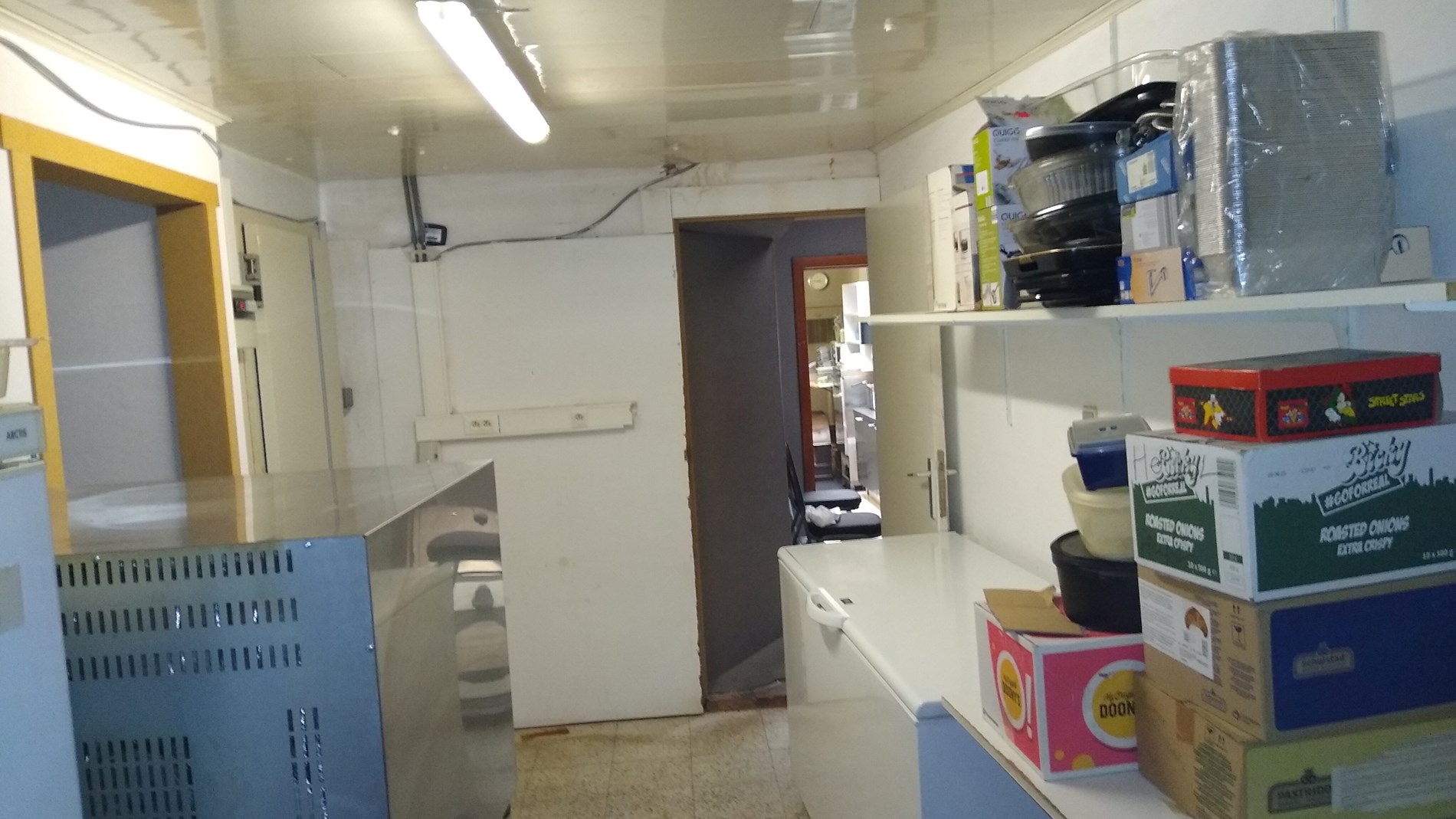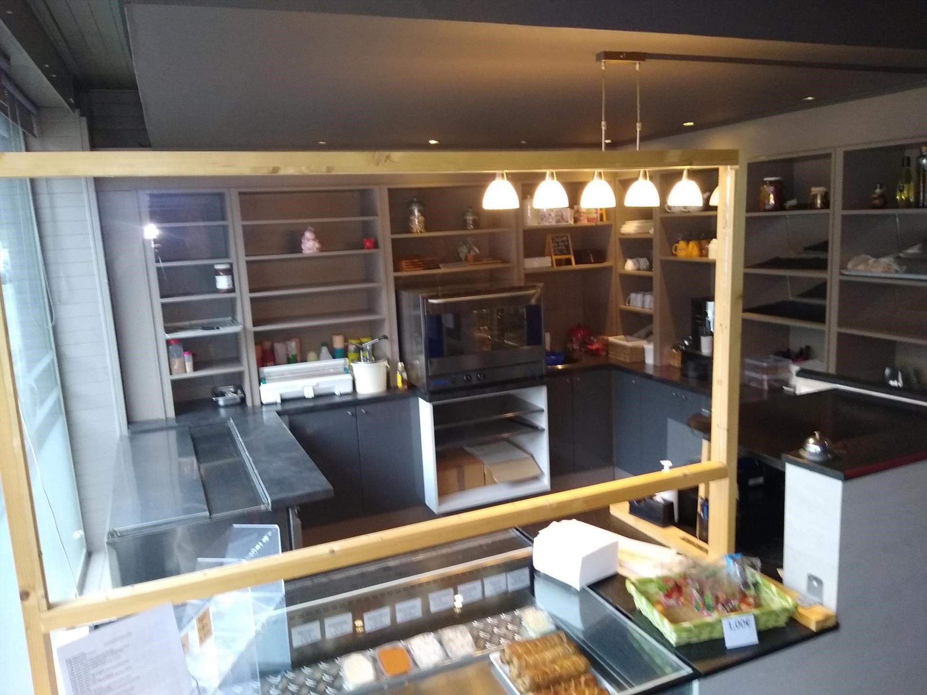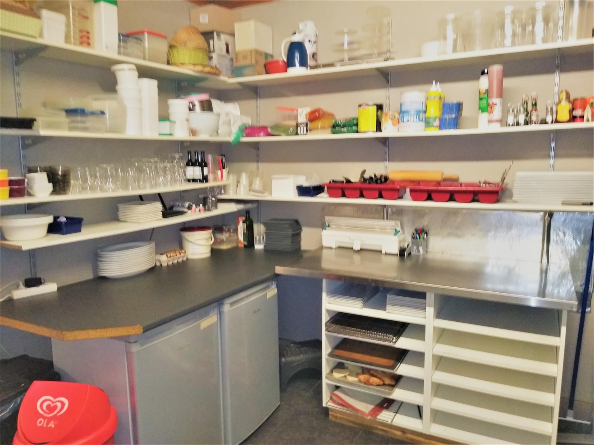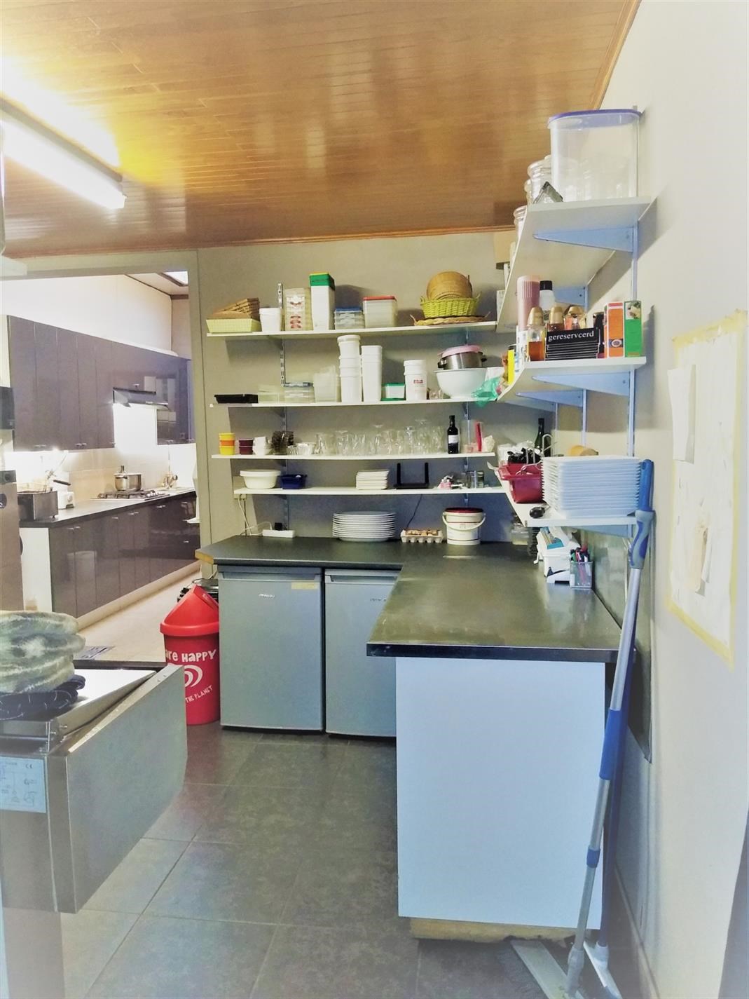 Op gelijkvloers is het handelsgedeelte dat onmiddellijk kan in gebruik genomen worden. Er zijn 2 gastentoiletten en een 30-tal zitplaatsen om ter plaatse te eten. De scholieren kennen dit gebouw zodanig dat zowel 's ochtends voor schooltijd als 's (na)middags deze plaats zeer druk bezocht wordt. Het handelsgedeelte omvat vooraan links een bedieningsgedeelte. Daarachter de keuken voor mise-en-place, alsook een uitgeruste keuken. Aanpalend een badkamer met wc. Daarachter professionele koelkasten en werkplaats. Rechts aanpalend is momenteel een slordig ogend magazijn hetwelke een zee van ruimte biedt als stockageplaats of als mogelijke uitbreidingszone voor het handelsgedeelte. Boven bevindt zich het te renoveren woongedeelte Achteraan het gebouw is een ruime garage met automatische sectionaalpoort. Deze garage is toegankelijk via een aparte weg achter het gebouw. afspraak tel. 053 80 92 70 of mail info@qualimmo.be Vastgoedinformatie "in aanvraag" Wg/Gdv/Vkr
