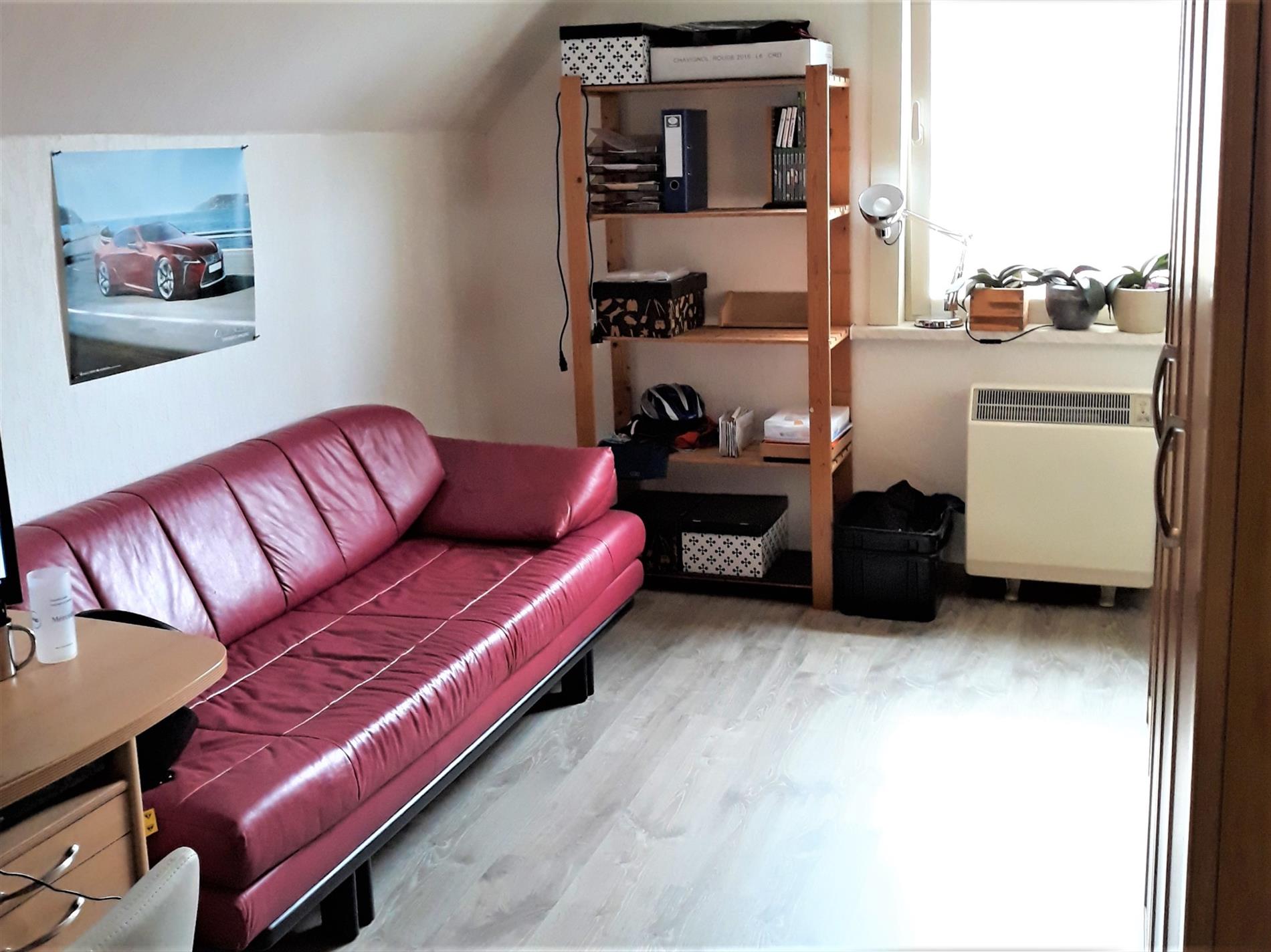 Via de trap in de hall bereiken we op de eerste verdieping de nachthall die toegang geeft tot 3 ruime slaapkamers en een modern ingerichte badkamer met inloopdouche, bad en toilet. De grootste slaapkamer van maar liefst 31m² geeft ook nog toegang tot een extra bergruimte en een zolderruimte
